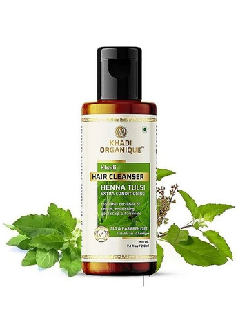 Натуральный травяной шампунь Хна и туласи сочетает давние традиции аюрведы с современными потребностями волос. Он бережно очищает кожу головы, регенерирует ее, предотвращая образование перхоти. Кроме того, шампунь помогает в борьбе с секущимися кончиками, и замедляет выпадение, обеспечивая активный рост здоровых волосков. Особенности Khadi Organique Hair Cleanser Henna And Tulsi: - обеспечивает чувство чистоты, свежести и прохлады; - кондиционирует пряди, облегчая процесс укладки; - проявляет противовоспалительные и антиоксидантные свойства; - хна укрепляет структуру волосков и придает им зеркальный блеск; - алоевера микроэлементами; - тулас стимулирует кровообращение кожи головы, укрепляя корни и предотвращая выпадение; - натуральный экстракт шикакай активирует рост волос, делает его шелковистыми, послушными и блестящими.