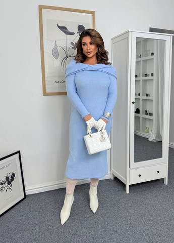 Женский демисезонный костюм. Изготовлен из мягкого трикотажа, который имеет фактуру в рубчик. Основная особенность этой ткани - хорошая эластичность, благодаря этому хорошо садится по фигуре. Костюм состоит из гольфа и брюк широкого кроя. Гольф имеет воротник фасона хомут, то есть свободный и не обтягивает шею. Рукава длинные, без манжетов. Линия плеча спущена, как на оверсайз моделях. Брюки с резинкой на талии, без застежек. По бокам есть два кармана с отрезным бочком.