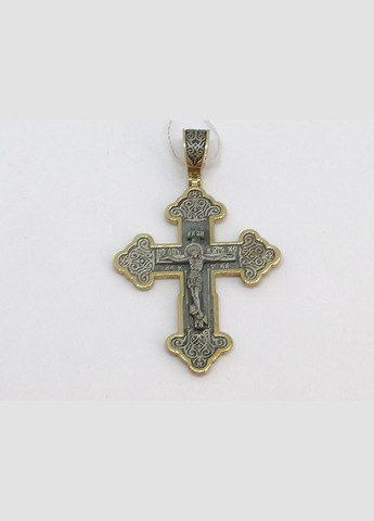 Крест Распятие Христа из серебра 925 пробы с позолотой и чернением Крест - символ веры и любви к Богу, личный священный знак Таинства Крещения, совершенного над человеком, в котором он получил второе, духовное рождение. На лицевой стороне нательных крестов чаще всего изображают Распятие, потому что это орудие казни Иисус Христос сделал символом победы над грехом и смертью. Своими страданиями Он искупил грехи человечества: победил сатану, освободил души праведников от вечной смерти и открыл им небесные врата рая. Жертва Христа сделала возможным спасение для каждого человека. Поэтому на оборотной стороне этого крестика написано: «Спаси и сохрани». - 6,14 г Вес конкретного изделия уточняется при подтверждении заказа