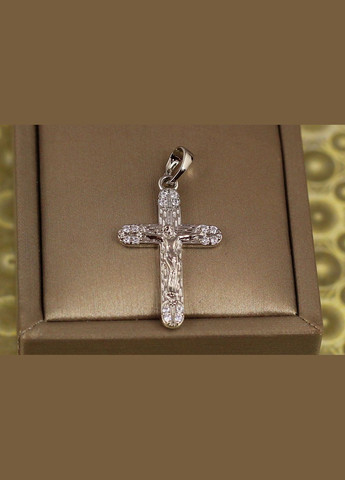 Крестик Xuping Jewelry с распятием и фианитом по краям серебристый длина 3 см ширина 2 см