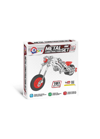 Традиция металлических конструкторов берет свое начало в далеком 18 в. На этих конструкторах выросло множество поколений известных изобретателей, механиков и инженеров. Благодаря игрушке мальчишки (да и девочки) приобретают первые навыки соединения деталей винтами, гайками, работы отверткой и ключами. Они собственными руками создают настоящие "работающие модели": разнообразные автомобили, вертолет, кран, трактор, поезд, внедорожник, танк, мотоцикл и много другой техники. Работа с конструктором: вызывает у детей интерес к работе машин и механизмов; дает базовые понятия о взаимодействии отдельных частей; знакомит с техническими названиями деталей, простыми чертежами и схемами; развивает навыки логического мышления, пространственное воображение, внимательность и фантазию. Металлические конструкторы используются на уроках в начальной школе как наборы для конструирования с разными способами соединения (НУШ). Набирающая обороты новейшая методика STEM (Science, Technology, Engineering, Mathematics) активно применяет такие конструкторы в образовательном процессе. Например, можно собрать модель молекулы, цветка, ветряной мельницы или динозавра. Ребёнок не просто знакомится с новыми направлениями развития точных наук и инженерии, а учится реализовывать изученное на практике. Металлические конструкторы отличают высоким качеством и разнообразием деталей, интересным сочетанием металлических и пластиковых запчастей. В каждом наборе есть отвертки и ключи для сборки моделей. В помощь юным механикам – цветная, детальная пошаговая инструкция, которую можно скачать с нашего корпоративного сайта. Особое внимание следует уделить подробной видео инструкции на YouTube канале. Кроме того, малый изобретатель может придумать собственные варианты сборки и новые интересные модели. Творческая работа является основой развития креативного мышления ребенка. Игры с конструктором ТехноК принесут много пользы и будут интересны не только малышам, но и взрослым. Металлический конструктор "Воздушный транспорт" (191 деталь) с расширенными дизайнерскими возможностями благодаря интересным разноцветным пластиковым деталям. Преимущество игрушки – металлические детали разных цветов. Инструкция металлического конструктора "Воздушный транспорт" содержит описание 8 моделей: - самолет, - вертолет (модель №1), - истребитель, - аэроплан, - гидроплан, - вертолет (модель №2), – самолет (модель №2), и т.д. Упаковка – яркая цветная коробка.