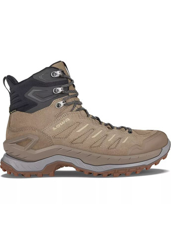 LOWA Innovo GTX MID – мужские ботинки для хайкинга и трекинга. Модель оснащена подошвой LOWA® TERRA TRAC® с оптимизированной резиновой смесью для обеспечения хорошего сцепления, а разнонаправленный рисунок протектора и увеличенная площадь контакта обеспечивают оптимальное сцепление на любых поверхностях. Конструкция подошвы с технологией LOWA MONOWRAP® способствует эффективному распределению нагрузки и снижению ударных нагрузок на стопу, обеспечивая комфорт при ходьбе по различным поверхностям. Промежуточная подошва LOWA DynaPU®+ эффективно поглощает ударные нагрузки при ходьбе и сохраняет свои амортизирующие свойства даже после длительного использования. Стелька, сочетающая полиуретан, войлок и Memo Latex, обеспечивает отличную амортизацию и индивидуальную подгонку. Мембрана Gore-Tex® гарантирует водонепроницаемость, ветрозащиту и отличную воздухопроницаемость – ноги останутся сухими даже в самых сложных погодных условиях. Удлинённая шнуровка с фиксирующими крючками обеспечивает оптимальное прилегание. Усиленный мысок и удобные петли для надевания и снятия ботинок дополняют функциональный дизайн.