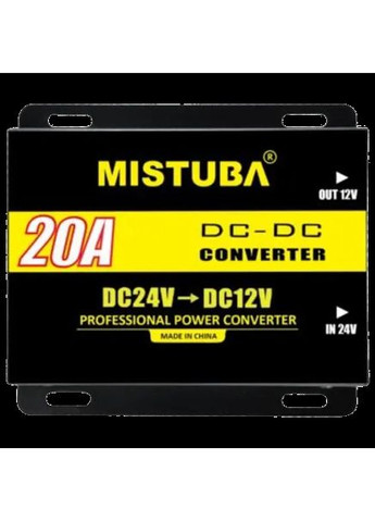 Преобразователь DC/DC 24v-12v 20A Прибор инвертора DC/24v DC-12v 20A предназначен для преобразования электричества 24В в 12В. Позволяет подключать погрузку до 120Вт. К примеру: видеокамеру, телефон, ноутбук, различную аудио- и видеотехнику и другие электроприборы и бытовую технику. Корпус изготовлен из металла, на задней части расположены провода для подключения, световой индикатор работы. Прибор рассчитан на выдачу до 10А. Область применения: в автомобиле, катере, солнечных и ветровых электрогенераторах, для аварийной работы и т.д. Технические характеристики: • Входящее напряжение: DC 24V; • Напряжение на выходе: DC 12 V; • Мощность: 120W; • Максимальная мощность тока: 20A; • Максимальная температура работы: 80 ° C; • Статический рабочий ток: <50ma; • По бокам отверстия для охлаждения; • Индикатор работы; • Внутри находится радиатор для отвода тепла; • По бокам имеются выступы с отверстиями для крепления; • Защита от напряжения; • Имеет 2 независимых канала; Материал корпуса: металл; • Размеры: 115 х 110(85) х 42 мм; • Вес: 290 г.