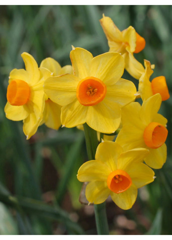 Нарцисс Таццета Grand Soleil d'Or – этот энергичный нарцисс, распускающий длинные, вертикальные стебли, увенчанные многочисленными душистыми цветами, освещает день независимо от погоды на улице. Настоящее солнышко, предназначенное специально для выгонки: золотисто-желтые лепестки обрамляют компактную оранжевую корону. Один цветонос может образовать 10–20 цветков, звучащий как настоящий весенний салют. А еще — он обладает деликатным, сладким ароматом, который наполняет воздух первым теплом сезона. Хотя этот сорт прекрасно подходит для выращивания в помещении зимой или в начале весны, он также довольно хорошо смотрится в открытом грунте, но для лучшего выживания в почве в течение зимы ему нужна солнечная, защищенная и хорошо дренажная. Высота взрослого растения достигает около 45 см, поэтому он очень хорошо смотрится в больших цветочных композициях. Попытайтесь вырастить этот сорт уже в этом сезоне – и вы точно в него влюбитесь, а насыщенный аромат будет лишь дополнять общую картину и атмсоферу весны на вашем подоконнике. Нарциссы Таццета, также известные как крупные нарциссы или букетные, - это вид нарциссов, характеризующийся большим количеством мелких цветков на одном стебле, собранных в соцветия. Они отличаются приятным ароматом и нежными лепестками. Видовое название "tazetta" происходит от итальянского слова "tazza", означающего "маленькая чаша", из-за формы прицветника цветка. Интересно, что нарциссы Таццета имеют несколько цветков на одном стебле, часто до 10-15, и могут иметь белые, желтые или кремовые лепестки и коронку. Их часто выращивают в садах, клумбах, альпинариях, а также в контейнерах для украшения балконов и интерьеров. Идеальные условия для выращивания: выращивание нарциссов, как в конце концов и других луковичных весеннецветущих растений, не требует особого труда, но некоторые факторы все же лучше учесть. Во-первых, мы говорим о выборе места, почвы, правильной посадке и уходе после посадки. Помните, что нарциссы любят солнечные участки, но могут прекрасно расти и в полутени. Почва должна быть влажной, суглинистой, с достаточным количеством питательных веществ. Не рекомендуется сажать нарциссы в слишком кислую почву, желательно нейтральную или слабощелочной. А перед посадкой его лучше подкормить компостом либо перегноем, также добавить фосфорные и калийные удобрения. Лучшее время для посадки нарциссов – осень, ориентировочно это сентябрь-октябрь, но учитывайте погодные условия в своем регионе. Глубина посадки зависит от размера луковиц, обычно это в 2-3 раза больше высоты луковицы. На тяжелых почвах глубину посадки можно убавить, а на легких – увеличить. После посадки почву можно замульчировать торфом или листьями, чтобы сохранить влагу. Особенности ухода после посадки очень просты. Прежде помните, что нарциссы влаголюбивые растения, но не переносят застоя воды. Поливайте их регулярно, особенно во время активного роста и цветения, но следите, чтобы почва не была переувлажнена. Вносите комплексные минеральные удобрения весной, во время бутонизации и после цветения. А также не забывайте каждый раз обрезать отсохшие цветоносы и листья, чтобы растение смогло накопить питательные вещества для следующего сезона. При правильном уходе, нарциссы смогут радовать вас на одном месте более 8 лет!