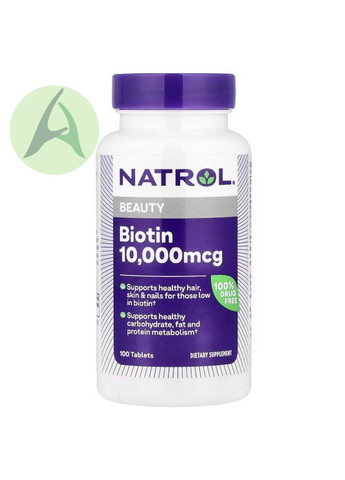 * Красота| * Поддерживает здоровье волос, кожи и ногтей у людей с низким уровнем биотина в организме| * Не содержит наркотических веществ| * Поддерживает здоровый обмен углеводов, жиров и белков| * Пищевая добавка| Биотин Natrol, 10 000 мкг| * Способствует выработке клеточной энергии| | РЕКОМЕНДАЦИИ ПО ПРИМЕНЕНИЮ| Взрослым принимать по 1 таблетке в день во время еды.| | ИНГРЕДИЕНТЫ| Микрокристаллическая целлюлоза, стеариновая кислота, стеарат магния, диоксид кремния, метилцеллюлоза, целлюлозная камедь, глицерин.| Не содержит молоко, яйца, рыбы, моллюсков и ракообразных, древесные орехи, арахис, пшеницы, сою, кунжута.| | ПРЕДУПРЕЖДЕНИЯ| Перед началом применения во время беременности, грудного вскармливания, в возрасте до 18 лет, при приеме лекарственных препаратов или наличии каких-либо заболеваний следует проконсультироваться с медицинским работником. При возникновении побочных реакций необходимо прекратить использование. Во время использования перед любыми лабораторными исследованиями сообщите врачу, что вы принимаете биотин. Хранить в недоступном для детей месте. Хранить в сухом и прохладном месте.| | Пищевая ценность| Размер порции: 1 таблетка| Порций в упаковке: 100| Количество в 1 порции % от суточной нормы| Биотин 10 000 мкг 33 333%| Кальций (в виде двузамещенного фосфата кальция) 66 мг 5%