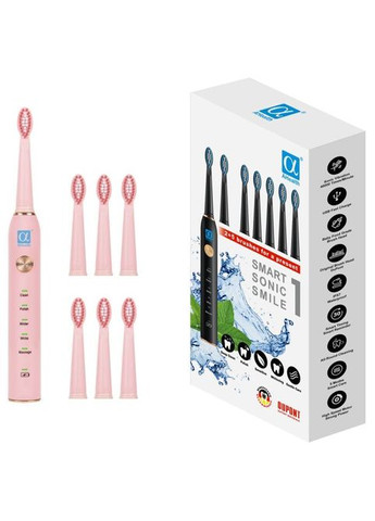 Электрическая зубная щетка Sonic Toothbrush X-3 Pink + 4 насадки Электрическая зубная щетка Sonic Toothbrush X-3 Бережное и эффективное удаление зубного налета Новое высокотехнологичное устройство по уходу за зубами раз и навсегда избавит Вас от проблем с зубным налетом, камнем. 42000 вибраций в минуту растворяют глубокий налет, удаляют зубные камни, отбеливают зубы, улучшают здоровье полости рта и полируют зубы до чудесного блеска. Позвольте себе яркую ухмылку! 6 режимов для 100% результата Ультразвуковая зубная щетка работает в 6 режимах: Для начинающих Мягкий Чистка Яркое отбеливание Полировка Укрепляющий массаж Выбирайте режим в соответствии с Вашими потребностями или с рекомендациями стоматолога. Интеллектуальный таймер и быстрая зарядка Электрическая зубная щетка оборудована интеллектуальным таймером на 2 минуты, который делает паузу каждые 30 секунд, чтобы напомнить вам о необходимости изменения зоны чистки. Именно такой метод рекомендуется стоматологами для достижения наилучших результатов. Щетка имеет встроенный аккумулятор, который легко заряжается с помощью USB. Благодаря компактным размерам и портативности вы можете использовать щетку как дома, так и в путешествии. Водонепроницаемая с 4 сменными насадками Электрическая зубная щетка имеет 4 насадки, изготовленные из немецкого нейлона Dupont. В комплект входят 4 насадки, к тому же вы всегда можете докупить сменные насадки при использовании. Водонепроницаемость IPX7 позволяет легко и эффективно мыть щетку под обычной струей воды из-под крана.