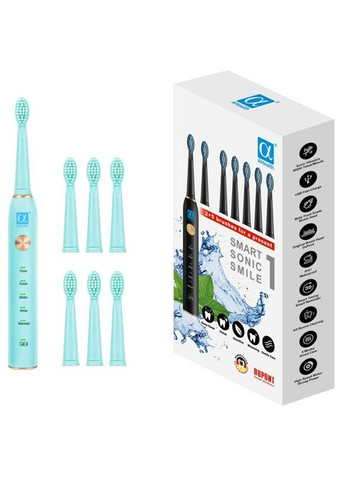 Электрическая зубная щетка AHealth SMART SONIC SMILE 1, это Немецкое совершенство и преимущество, которые помогут сделать вашу улыбку поистине очаровательной и здоровой. Благодаря мощной звуковой технологии 40000 импульсных движений в минуту, AHealth SMART SONIC SMILE 1 обеспечит идеальную очистку от зубного налета, а также предупредит формирование зубного камня придавая блеск и кристальную чистоту зубам. Ежедневное использование зубной щетки AHealth SMART SONIC SMILE 1 уже через короткий период даст ожидаемый высокий эстетический и здоровый результат для зубов, десен и полости рта, что эффективнее на 99% от обычной щетки. AHealth SMART SONIC SMILE 1, имеет пять смарт-режимов чистки, из которых вы сможете подобрать идеальные для вас. Глубокая очистка, универсальный максимально интенсивный режим чистки. Для чувствительных зубов, специальный бережный режим для зубов и десен с повышенной чувствительностью. Отбеливание, режим, позволяющий отбелить зубы на несколько тонов до естественного здорового светлого оттенка. Полировка, этот режим придаст яркий блеск эмали ваших зубов. Массаж десен, успокоит и укрепит десну, приводя ее в естественно здоровое состояние. AHealth SMART SONIC SMILE 1, подходит для взрослых и детей от шести лет. В комплект AHealth SMART SONIC SMILE 1, входят семь сменных щеток, что на длительный период, избавит вас от необходимости покупки дополнительных расходных материалов. Все щетинки зубных щеток AHealth SMART SONIC SMILE состоят исключительно из высококачественных нейлоновых нанощетинок производства DuPont. Здоровые зубы всегда и везде, удобная зарядка от любого устройства с USB, легкий вес и компактная эргономичная форма, легко разместиться в любой сумке или чемодане, отправляясь на отдых, рабочую поездку, обучение и прочее. Особенности ● Предотвращает формирование зубного камня ● 40000 звуковых движений в минуту ● 5 смарт режимов чистки ● Эффективнее обычной щетки устраняет 99% зубного налета ● Используются только высококачественные бережные щетинки щеток производства DuPont ● Водонепроницаемость IPX7 ● До 25 дней свойства, характеристики, внешний вид и комплектацию товаров без уведомления.