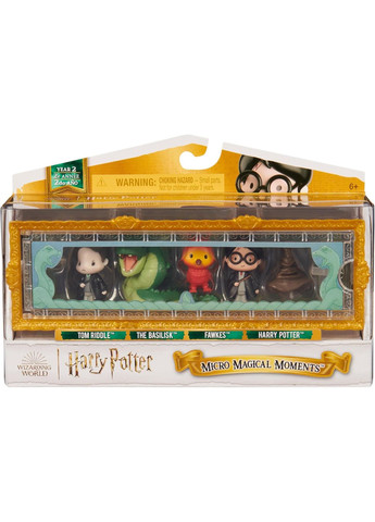 Оживите легендарные моменты из фильмов второго года обучения с наборами фигурок «Волшебный мир Гарри Поттера — Микромагические моменты». Подарочный набор «Тайная комната» содержит фигурки размером около 4 см, прозрачную коробку с портретной рамкой и двусторонним фоном. Распакуйте персонажей и откройте для себя очаровательные детали Гарри Поттера, Тома Риддла, Василиска, Феникса и Распределяющей Шляпы. Прозрачные коробки для хранения можно складывать и соединять друг с другом. Так что вы можете собрать свою собственную коллекцию. Для маленьких и больших поклонников Гарри Поттера и магии: играть, коллекционировать и дарить. Подходит для детей от 6 лет и старше. Набор из 5 специальных фигурок Гарри Поттера: Гарри Поттера, Тома Риддла, Василиска, Феникса и Распределяющей Шляпы размером 4 см в прозрачной витрине с золотой рамкой и 4 кронштейнами. Подарочный набор «Тайная комната»: аутентичные минифигурки и детально проработанный фон витрины позволяют воссоздать незабываемую сцену из второго года обучения Гарри Поттера в Хогвартсе. СОЕДИНЯЙТЕ, СОЕДИНЯЙТЕ И РАСПОЛАГАЙТЕ. Витрины фигурок Гарри Поттера вдохновлены рамками для фотографий и картинами из замка Хогвартс. Совместимы с другими игровыми наборами Micro Magical Moments и коллекционными фигурками Spin Master: маленькие витрины (продаются отдельно) легко соединяются друг с другом. Комплект: 5 фигурок, 1 витрина, 4 кронштейна, 1 обзор коллекции. Для маленьких и больших поклонников Гарри Поттера и магии: для игры, коллекционирования и подарков. Подходит для детей от 6 лет.