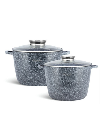 Посуда изготовлена из литого алюминия, это высококачественный, экологически чистый материал, обладающий высокой теплопроводностью, гигиеничностью и небольшим весом. Трехслойное мраморное антипригарное покрытие, не содержащее вредных PFOA веществ, обладает высокой устойчивостью к истиранию, царапинам и другим механическим повреждениям. Благодаря своему составу, такое покрытие легко мыть.