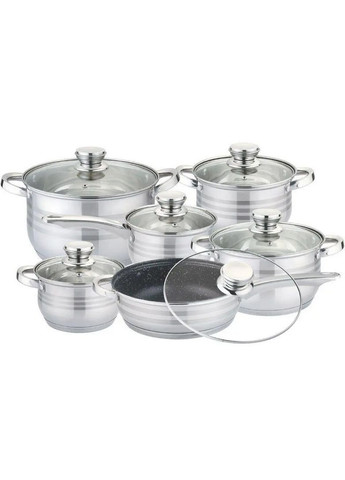 Если вам необходима красивая, практичная и долговечная посуда, то вам нужна посуда из нержавейки. Данный набор состоит из 4х кастрюль с жаропрочными крышками и отверстиями для пара, сотейника и сковородки с внутренним антипригарным мраморным покрытием с капсюльным дном, что позволит быстро и равномерно разогреваться и экономить время. Характеристики набора посуды Edenberg EB-4039: Тип: набор Количество: 12 пр. (кастрюли + крышки) Матовый корпус Материал: нержавеющая сталь Крышка: стекло, отверстие для выхода пара Клепаные ручки Индукционное дно Можно использовать на индукционной плите Вес комплекта: 8 кг Комплектация Edenberg EB-4039: Кастрюля с крышкой 6.6 л 5 диаметр 24 л. см Кастрюля с крышкой 4.0 л, диаметр 20 см х высота 12.5 см Кастрюля с крышкой 3.0 л, диаметр 18 см x высота 11.5 см Кастрюля с крышкой 2.1 л диаметр 16 см x высота 10.5 см Сковорода мрамор выс. высота 7.5 см Ковш с крышкой 2.1 л диаметр 16 см x высота 10.5 см