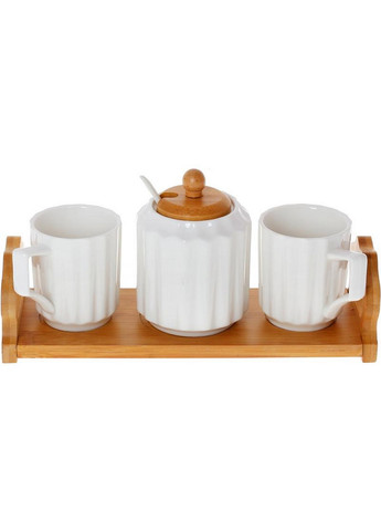 Отправка в течение 2-3 рабочих дней. Кофейный набор Nouvelle Home Coutle – 3 предмета на влагостойкой бамбуковой подставке. В набор входит сахарница 330мл с фарфоровой ложечкой и два кружка по 150мл. Все предметы размещаются на влагостойкой бамбуковой подставке. Классический белый цвет для любого сервировочного стиля. Натуральные бамбуковые части выгодно сочетаются с белым фарфором. Размер набора: 20х20х16см. Nouvelle Home – практичная столовая посуда и эффектное украшение сервировки! Набор упакован в фирменную коробку. Серия: Nouvelle Home; Комплект: на 2 персоны; Материал: Фарфор, натуральный влагостойкий бамбук; <param name="Объем: Кружки: 2 х 157 мл, сахарница 330 мл; Размер: 20 х 20 х 16 см; Комплектация: 2 кружки, 1 сахарница, 1 крышка, 1 ложечка, 1 подставка; Посудомоечная машина: Да (только фарфоровые части);