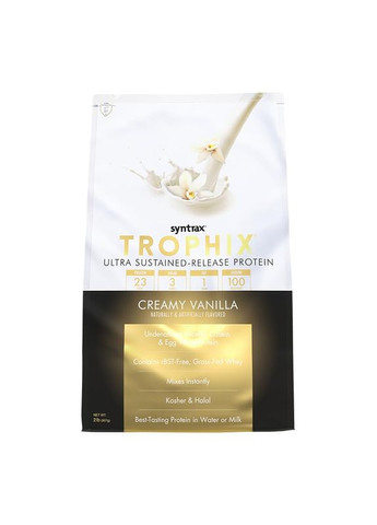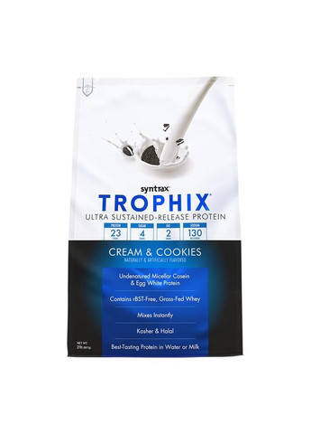 технологии, в основе которой – комбинация четырех разных типов белка, предназначенная для максимально эффективного питания мышц белками и аминокислотами в течение длительного времени (12 часов). Как и все продукты бренда Syntrax, Trophix содержит богатые источники белка.