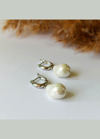 Серьги натуральная Майорка Кеши, швенза английский замочек родий гипоаллергенный сплав d-10х32мм+-