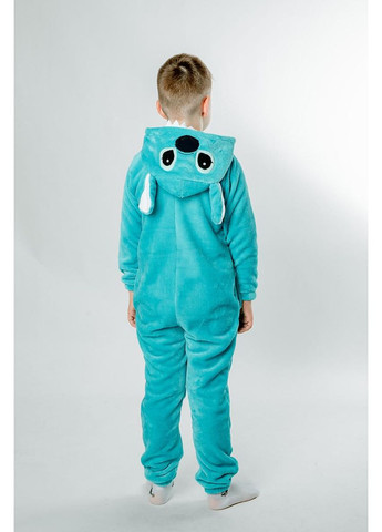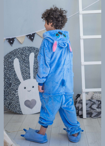 Уютное кигуруми в образе любимого персонажа Стича станет отличным выбором для дома или утренника. Модель выполнена из мягкого плюша, приятного на ощупь и хорошо сохраняющего тепло. Капюшон украшен вышитыми чертами лица, длинными ушками и носиком. Спереди застёгивается на кнопки. Имеются две боковые накладные карманы. Манжеты на рукавах и брюках — на резинке. На спинке — мягкий хвостик.