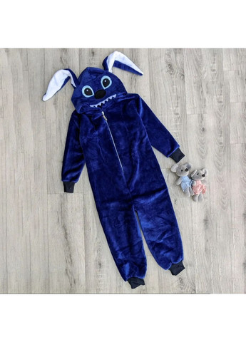 Яркий детский кигуруми для мальчика в стиле героя Стыча. Выполнен из мягкой махровой ткани, приятной на ощупь и теплой. Модель имеет длинный рукав, манжеты на рукавах и штанинах, застегивается на молнию по всей длине. Капюшон оформлен в виде мордашки Стыча с ушками, что делает костюм особенно веселым и оригинальным.