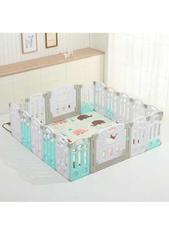 Пластиковое ограждение — отличное решение для родителей и их детей. Детский манеж — это превосходное решение для дома, детских садов, детских комнат в магазинах, салонах красоты и т. д. Манеж стоит на прорезиненных основаниях (не на присосках), что предотвращает скольжение и обеспечивает устойчивость. В комплекте: 16 секций (заборчиков) и 2 основные панели (игровая и с калиткой). Размер: 150 см ×200 см (конфигурацию можно изменять). Цвет: белый, зелёный. Материал: нетоксичный пластик HDPE, без BPA, без запаха. Манеж имеет складную конструкцию, состоит из отдельных секций. Преимущества этого манежа — устойчивость и прочность, что гарантирует безопасность ребёнка. Высота манежа — 64 см, поэтому можно быть уверенным, что дети не перелезут через него и не поранятся. Лёгкая установка и сборка без необходимости полного разбора. Можно использовать на любых поверхностях благодаря противоскользящим накладкам. Подходит для обеспечения безопасности ребёнка, даже если родителей нет в комнате. Большой складной модульный манеж. Подарок — коврик!