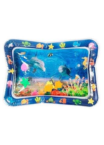 Коврик яркий, интересный и постоянно колышется. Также в нем плавают разные фигурки цветных рыбок. Просто нужно заполнить его водой, поставить на ровную поверхность и положить младенца животиком вниз. Такая игра вызывает много положительных эмоций как у ребенка, так и у его родителей! Когда малыш лежит на животике, это стимулирует развитие твердой головы, шеи и мышц плеч, укрепляет спину, ножки и ручки. Характеристики: Надежные материалы изготовления; Развивает моторику; Прост в использовании; Безопасен для ребенка. Возрастная группа: от 3-х месяцев до 2-х лет; Материал: ПВХ; Вес: 0.2 кг; Размеры: 66х50х2,5 см.