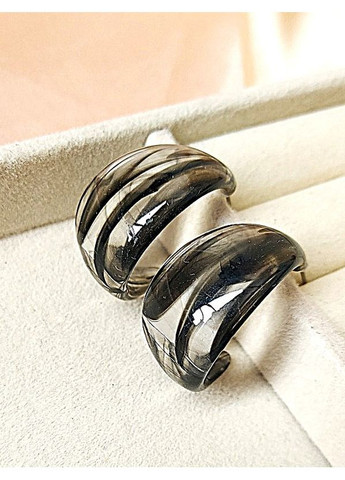 Серьги стильные деликатные серьги на каждый день широкие эффектные кольца акриловые черно-прозрачные серьги ширина серьги 1.5 см диаметр кола 2.7 см застежка типа "пусет"(гвоздь)