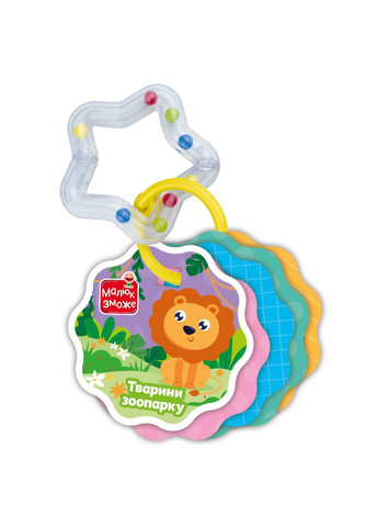 Львенок и его друзья хотят познакомиться с вашим малышом и подарить незабываемое веселье. Жители зоопарка улыбаются и приветствуют малышей волшебной погремушкой. Играем и тренируем: мелкую моторику, память. Знакомимся с жителями зоопарка. Комплектация: 6 карточек, погремушка, кольцо. Мова: украинский. Возраст: 2-3 года.