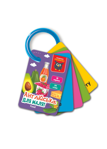 Уже знаете названия продуктов на родном языке? Узнайте, как они называются английским и делайте первые шаги в изучении иностранного языка. Играем и тренируем: память, внимание, речь. Учим английские слова. Комплектация: 18 карт, съемное кольцо. Мова: украинский. Возраст: 4-6 лет.