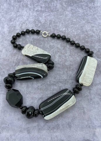 Бусы из натурального агата - великолепное украшение, которое привлекает внимание своей красотой и уникальностью. Агат - это драгоценный камень, который восхищает своим разнообразием цветов и узоров. Каждый камень агата уникален и обладает своими индивидуальными узорами и текстурой, созданными природой. Это придает бусам особую привлекательность и оригинальность. Бусы из натурального агата могут быть одноцветными или могут содержать комбинацию разных оттенков и оттенков, создавая интересный и гармоничный образ. Это украшение идеально подходит для тех, кто ценит натуральные камни и уникальные аксессуары. Они могут быть носимыми как на повседневных выходах, так и на особых случаях, добавляя изысканности и шарма любому наряду. Бусы из натурального агата могут быть прекрасным подарком для любимого человека или близкого друга, подчеркивая их индивидуальность и стиль. Характеристики Длина 45 см Размер камней Бусины от 8 до 19,5 мм Цвет чорный Застежка кольцо