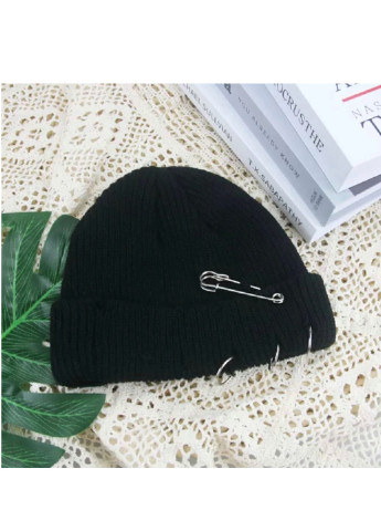 Трендовая молодежная шапка бини связана из качественной мягкой акриловой пряжи с добавлением шерсти. Плотно прилегает к голове, повторяя ее контур. Декорирована дырками, кольцами и булавкой. Унисекс. Размер универсальный (one-size) Подойдёт на объем головы 55-58 см. Теплая и практичная модель для повседневной эксплуатации в осенне-зимний период. Состав пряжи: 20% шерсть 80% акрил