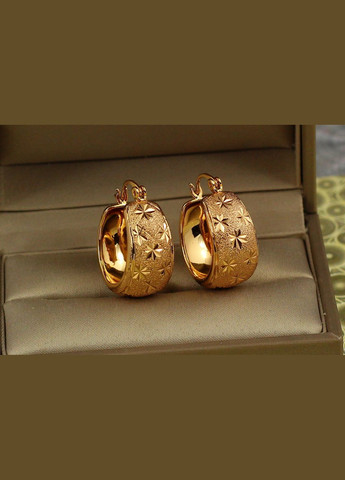 Серьги кольца Хuping Jewelry широкие шагреневые со звездочками золотистые застежка булавка