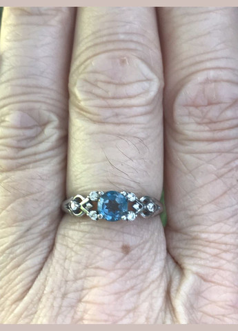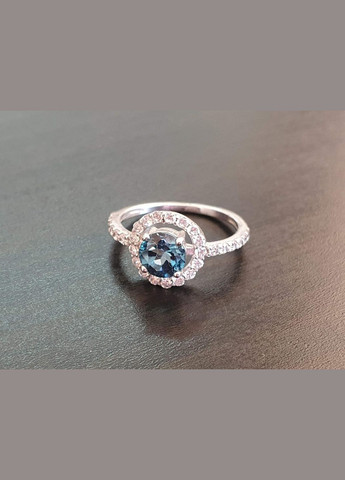 Серебряное кольцо 925 пробы с топазом London и фианитами, покрыто родием - 1,74 г Вес конкретного изделия уточняется при подтверждении заказа