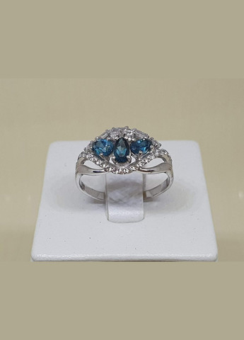 Серебряное кольцо 925 пробы с топазом London и фианитами, покрыто родием 2,59 г Вес конкретного изделия уточняется при подтверждении заказа