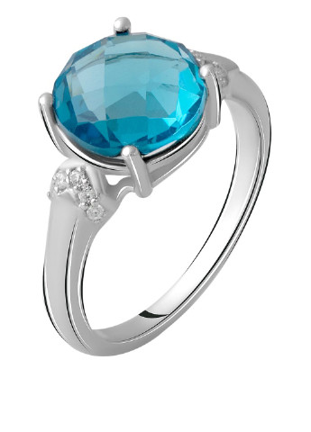 Кольцо серебряное(925) с голубым топазом, высота 9 мм.