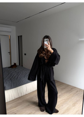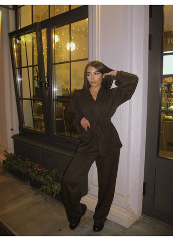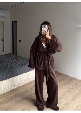 КОСТЮМ (кимоно + палаццо) – твоя идеальная формула стиля и комфорта! Изготовлен из плотной теплой вязки, которая не кашлатится, не вытягивается и отлично держит форму 🔥 Идеальный выбор на осенне-зимний сезон – сочетает уют, качество и трендовый силуэт. ✨ Удобный, стильный и приятный для тела ✨ Лаконичный дизайн и свободный крой для современных, уверенных женщин. ✨ Носится как комплект или отдельно 📏 Замеры по изделию: ОГ - 115 см ОС – 110 см Длина кардигана – 70 см. Длина рукава от горловины – 74 см. Длина штанов - 105 см.