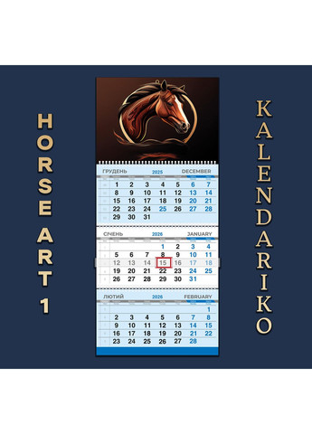 Квартальный календарь "Год Лошади" на 2026 год - это символ свободы, энергии и стремления вперед. Календарь с изображениями великих лошадей станет воплощением силы и красоты. Он будет не только практичным помощником, но и источником вдохновения на каждый день. Характеристики: Вид: квартальный, на 3 пружины; Размер: 297*675мм; Блок: 3 блока по 12 листов, 297х140 мм, мелованная матовая бумага 115г/м2; Крепление: отверстие с металлическим люверсом; Дизайн: художественные изображения и фотографии лошадей; Языки: двуязычный (украинский и английский). Каждый месяц будет вдохновлять вас стремиться к новым целям и победам.