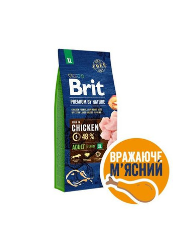 Brit Premium by Nature Adult XL – отличная формула с куриным мясом для взрослых собак гигантских пород (45-90 кг). Поддержка питания и подвижности суставов Способствует защите от стресса и поддерживает работу сердца Поддержка иммунитета и общего самочувствия Полупакета курицы Лучший вкус и усвояемость хорошего пищеварения и иммунитета Состав: курятина 48% (дегидратированная 28%, очищенная от костей 20%), овес, пшеница, куриный жир (консервированный смесью токоферолов), кукуруза, сушеные яблоки, лососевое масло (2%), гидролизованная курица. глюкозамина, 210 мг/кг), хрящи (источник хондроитина, 150 мг/кг), травы и фрукты (гвоздика, цитрусовые, розмарин, куркума, 120 мг/кг), мананолигосахариды (120 мг/кг), фруктоолигосахариды (90 мг/кг), юкка Шидигера (90 мг/кг), сушеная ромашка (80 мг/кг), новозеландские зеленые мик голубика (50 мг/кг). Аналитические компоненты: сырой белок 28,0 %, содержание жиров 16,0 %, влажная 10,0 %, сырая зола 7,0 %, сырая клетчатка 2,5 %, кальций 1,5 %, фосфор 1,1 %, омега 3 0,2 %, омега 6 1 Пищевые добавки на 1 кг: витамин A (3a672a) 15000 МЕ, витамин D3 (E671) 1 000 МЕ, витамин E (a-токоферол) (3a700) 400 мг, биотин (3a880) 0,5 мг холинхлорид 3 b606) 70 мг, гидрат хелатный комплекс железа с аминокислотами (Е1) 60 мг, гидрат хелатный комплекс меди ccaromyces cerevisiae CNCM I-3060 (инактивированные селеновые дрожжи) (3b8.10) 0,2 мг. Энергетическая ценность: 3 770 ккал/кг Вес собаки, кг Суточная норма, г 45 340 50 380 60 430 70 480 80 540 90 590