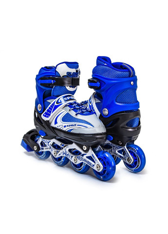 Набор роликовых коньков Combo M с комплектом защиты от Maraton Этот замечательный набор включает в себя все необходимое начинающему роллеру - качественные и надежные ролики, шлем, набор наколенников, налокотников и защиты на запястья, а так же удобную сумку-рюкзак. А возможность переставлять попарно задние колеса делают этот комплект идеальным вариантом для обучения езде на роликах. Роликовые коньки в данном наборе сочетают в себе все основные требования к качественным роликам - полиуретановые мягкие колеса, алюминиевая рама, надежный подшипник ABEC 7. Мягкие дышащие сетчатые материалы внутри ботинка делают езду приятной и комфортной. Данная модель роликовых коньков с легкостью регулируется по размеру ноги ребенка одним нажатием на кнопку раздвижного механизма. Удобная сумка для роликов, входящая в комплект, кроме обычной ручки имеет так же крепления как у рюкзака (для ношения на спине). В комплект входит: Ролики, шлем, налокотники, наколенники, защита для запястий, сумочка для переноски, набор осей для переставления колес по ДВА в ряд. Характеристики: Тип: детские раздвижные. Застежка: классическая система шнуровки, пяточный ремень, клипса с фиксатором. Размер: М - (34-37 см.) Диаметр колёс: 64 мм. Материал колёс: PU Полиуретан Жесткость колёс: 82А Подшипники: АВЕС 7 Отправим игрушки оптом и в розницу по всей Украине