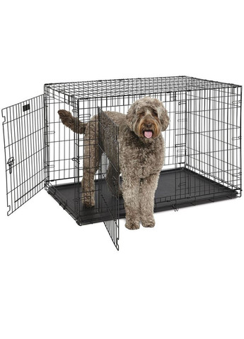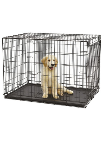 Эта качественная функциональная клетка предназначена для животных среднего и большого размера. Вы можете не переживать, что не сможете приподнять клетку вместе с собакой. Этого не нужно делать, потому что она оборудована колесами, упрощающими транспортировку даже больших питомцев. Можно взять клетку за ручку наверху и без особого труда подкатить к нужному месту. Клетка изготовлена из армированных стальных прутьев, крепкая и надежная. Две двери помогают оптимально располагать клетку в квартире или машине, создают дополнительное удобство при перемещении питомца внутрь и извлечении из нее. Это особенно актуально, если животное болеет и клетка – средство обезопасить его на период выздоровления и реабилитации. Хорошо, что можно получить доступ к собаке с двух сторон. Так гораздо удобнее оказывать помощь, проводить процедуры и ухаживать за питомцем. Клетка будет незаменима также при транспортировке животного. Обе дверцы в ней оборудованы замками запатентованной системы Securo lock, что гарантирует полную безопасность – дверь будет оставаться закрытой, пока вы сами не откроете ее. Клетка может использоваться, если животное на время необходимо изолировать для его безопасности. Например, в вашем доме проводятся ремонтные работы, пришли гости со своим питомцем или с детьми. Некоторым собакам, в силу их психологических особенностей, просто нужно свое изолированное место. Воспитанники в нем успокаиваются и восстанавливаются, что помогает сохранять психологическое равновесие, бережет хрупкую нервную систему животного. Вы можете оставлять в клетке щенков, если они еще не усвоили все правила поведения в квартире, а вам нужно отлучиться из дома. Негативное восприятие клетки – это больше стереотип, чем обоснованный факт. Если животное может навредить себе или портит вещи в квартире в ваше отсутствие, то клетка – оптимальное решение, которое позволит решать проблему с минимальным дискомфортом для животного. Качественные материалы, надежные колеса, оптимальный размер – отличный способ минимизировать психологические и материальные потери в разные периоды жизни собаки. Преимущества и особенности: крепкая металлическая конструкция; наличие колес позволяет легко перемещать клетку; запатентованная система Securo lock обеспечивает полную сохранность животного; удобный и безопасный замок на обеих дверцах; 2 дверцы позволяют свободно разместить клетку в любом месте багажного отделения; 2 дверцы позволяют комфортно помещать и доставать животное из клетки; армированные стальные труды обеспечивают прочность и устойчивость конструкции; крепкие тройные защелки гарантируют надежное запирание обеих дверей; удобная универсальная прочная ручка для комфортной переноски клетки; разборная конструкция позволяет хранить клетку, не занимая много места; простота сборки, разные цвета и размеры. Характеристики: Размер и вес клетки: L - 91,5х58,5х63,5 см (10, 5 кг) XL - 106,5х71х76 см (14,6 кг) Цвет: черный Материал: сталь, металл, полипропилен