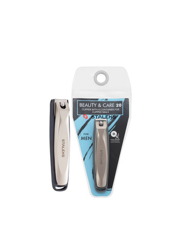 Книпсер для мужского маникюра Staleks BEAUTY & CARE 20 KBC-20 с контейнером для ногтей Эта модель книпсера Staleks BEAUTY & CARE 20 KBC-20 разработана специально для мужских ногтей, которые толще и плотнее женских. Поэтому маникюрные кусачки Staleks For Men из серии Beauty & Care 20 подойдут каждому мужчине, понимающему важность гигиены и ухоженность ногтей. Книпсер изготовлен из медицинской стали марки 20х13. Поэтому маникюрный инструмент делает устойчив к коррозии металла, предельно прочный и острый. Ширина и изгиб лезвий повторяют ногтевую форму свободного края. Книпсер хорошо пружинит, длину ногтя вы сможете корректировать без всяких усилий. Поэтому инструмент отлично подходит как для домашнего, так и профессионального использования. Особенности кипсера для ногтей с контейнером STALEKS BEAUTY & CARE 20: простая конструкция обеспечивает комфортное и удобное использование; отличные режущие способности позволяют справляться с ногтями любой толщины и твердости, без расслоения и ломкости пластины; ручная заточка гарантирует срез с одного нажатия. Книпсер для ногтей Staleks BEAUTY & CARE 20 KBC-20 имеет дополнительно специальный пластиковый контейнер. Он «ловит» срезанные ногти, обеспечивая чистоту во время процедуры. На поверхности контейнера есть лазерная пилка, которая легко подкорректирует срез, сделав руки аккуратными и привлекательными. Используйте для обрезного маникюра и коррекции формы ногтей. Размер: 8 х 1,5 см.
