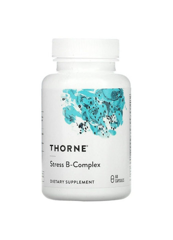 Thorne Stress B-Complex - это пищевая добавка, содержащая восемь витаминов группы B, а также пантотеновую кислоту (витамин B5).Особенности:Производство энергииСинтез белковНормальная функция нервной системыПоддержание иммунитетаПантотеновая кислота участвует в производстве коэнзима А, который необходим для многих метаболических процессов в организме. Комплекс витаминов группы B против стресса содержит оптимальный баланс незаменимых витаминов группы B с дополнительным витамином B5 для поддержки здоровой функции надпочечников и иммунитета.Как принимать:Принимать по 1 капсуле 1–3 раза в день или в соответствии с рекомендациями врача.Содержание элементов в 1й порции1 капсула, Витамин В1 (гидрохлорид тиамина) 50 мг, Витамин В2 28.6 мг, - рибофлавин 25 мг, - рибофлавин-5-фосфат натрия 3,6 мг, Витамин В3 (никотинамид) 80 мг, Витамин В4 (цитрат холина) 14 мг, Витамин В5 (пантотенат кальция) 250 мг, Витамин В6 28.4 мг, Витамин В7 (биотин) 80 мкг, - пиридоксин гидрохлорида 25 мг, - пиридоксаль 5-фосфат 3,4 мг, Витамин В9 (фолат) (L-5-метилтетрагидрофолиевая кислота, соль глюкозамина) 334 мкг, - L-5-метилтетрагидрофолат 200 мкг, Витамин B12 (метилкобаламин) 100 мкг, Ингредиенты, Капсула из гипромеллозы (полученной из целлюлозы), микрокристаллическая целлюлоза, лаурат кальция, диоксид кремния