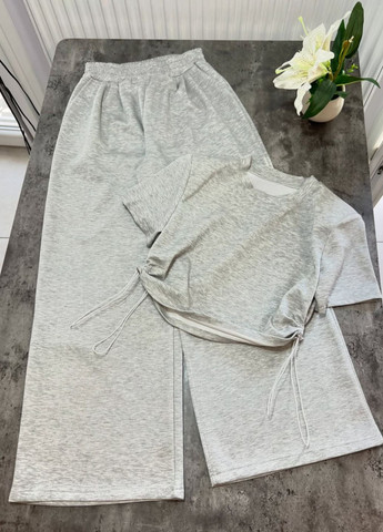 Стильный и комфортабельный комплект для современных модниц. Идеальный выбор как для обыденных образов, так и для особых случаев. Материал – мягкий трикотаж, двунитка, приятный к телу и дышащий. Комплект: футболка с декоративной шнуровкой по бокам + брюки клеш с высокой посадкой. Эластичный пояс, свободный крой, минималистичный дизайн. Замеры: Кофта ОГ 88/92/96 см Длина по спинке 46 см. Длина рукава от шеи 32 см Брюки ОТ 62-72/64-74/66-76 см ОБ 100/104/108 см Длина по краю 105 см. Длина шаг/шва 74 см