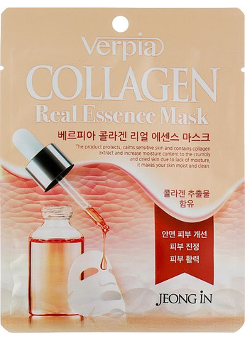 Коллаген – естественная возможность вернуть своей коже упругость и ухоженный вид. А с этим отлично справится тканевая маска для лица с коллагеном бренда Verpia. Средство оказывает положительное влияние на эпидермис, сглаживая мелкие морщинки, восстанавливая эластичность и возвращая естественный здоровый цвет кожи. При регулярном использовании бьюти-продукта можно заметить уменьшение естественной трансэпидермальной потери влаги и улучшение тонуса кожного покрова. Особенности Verpia Collagen Essence Mask: - изготовлена из прочного нетканого материала; - плотно прилегает к коже благодаря анатомически выверенному лекалу; - коллаген эффективно омолаживает эпидермис; - укрепляет кожный покров; и обновление кожного покрова; - аллантоин снимает воспаления и покраснения; - защищает от пересыхания и растрескивания кожи; - нормализует гидролипидную мантию; - сужает расширенные поры до естественных размеров; - замедляет процессы старения; покров; - дарит эпидермису гладкость и шелковистость; - выравнивает тон и микрорельеф.