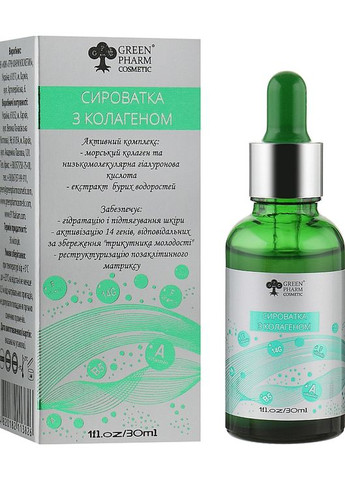 Если соединить целебные свойства растений и последние разработки ученых – получится отличная продукция, способная помочь в уходе за кожей лица. Именно такой философии придерживается бренд Green Pharm Cosmetic. Сыворотка с коллагеном – это must have для женщин после 30 лет! Она содержит высокую концентрацию полезных компонентов и способна проникать в глубокие слои дермы, преобразуя ее структуру и состояние. Молодость и красота остаются с теми, кто не жалеет времени и сил на регулярный и качественный уход за собой! Особенности «Сыворотка для лица с коллагеном» от бренда Green Pharm Cosmetic: - предназначена для зрелой кожи; - повышает упругость и эластичность эпидермиса; - содержит ценный экстракт бурых водорослей - активизирует 14 генов, отвечающих за сохранение молодости кожи; кислота глубоко увлажняет дерму; разглаживает морщины и предотвращает возрастные изменения.