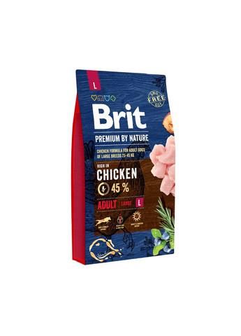 Полноценный корм с курицей для взрослых собак крупных пород (25-45 кг). С высоким содержанием курицы. Здоровая кожа и блестящая шерсть Лососевое масло — натуральный источник Омега-3 жирных кислот, способствует блеску и здоровью шерсти. Поддержка суставов и подвижности Натуральные хондропротекторы из коллагена, ракообразные и зеленогубые моллюски вместе содержат большое количество Омега-3 жирных кислот для поддержания здоровья суставов и подвижности собак. Поддержка иммунитета и здоровья Фрукты, травы и куркума содержат много витаминов и положительно влияют на иммунную систему. Маннанолигосахариды и фруктоолигосахариды поддерживают оптимальную флору кишечника. Состав: курица 45% (дегидратированная курица 25%, курица без костей 20%), овес, пшеница, куриный жир (консервированный токоферолами), кукуруза, сушеные яблоки, лососевое масло (2%), гидролизованная куриная печень, пивные дрожжи, коллаген, панцири ракообразных (источник глюкозамина, 210 мг / кг), хрящи (источник хондроитина, 150 мг / кг), травы и фрукты (гвоздика, цитрусовые, розмарин, куркума, 120 мг / кг), маннанолигосахариды (120 мг / кг), фруктоолигосахариды (90 мг / кг), Юкка Шидигера (Yucca schidigera) (90 мг / кг), сушеная ромашка (80 мг / кг), зеленогубые моллюски (источник глюкозаминогликанов в 50 мг / кг), сушеная черника (50 мг / кг). Протеин 27% Жир 14% Энергетическая ценность: 3770 ккал / кг Рекомендации по кормлению: Подавать корм сухим или увлажненным теплой водой. Корм должен быть разделен на 1-2 равные части в течение дня. Рекомендованная дневная норма указана в таблице кормления. Если Вы впервые кормите Brit Premium, используйте меньшие порции и смешивайте их с предыдущим кормом, постепенно увеличивая долю Brit Premium. Всегда следите за наличием свежей питьевой воды. Аналитический состав: сырой протеин 27.0 % жир 14.0 % влага 10.0 % сырая зола 7.0 % сырая клетчатка 2.0 % кальций 1.5 % фосфор 1.1 % Омега 3 0.2 % Омега 6 1.6 % Добавки на 1 кг: витамин A (3a672a) 15 000 МЕ витамин D3 (E671) 1 000 МЕ витамин E (α-токоферол) (3a700) 400 мг биотин (3a880) 0.5 мг хлорид холина(3a890) 500 мг хелат цинка гидрата аминокислот(3b606) 70 мг хелат железа гидрата аминокислот(E1) 60 мг хелат марганца гидрата аминокислот(E5) 30 мг йод(3b201) 0.5 мг хелат меди гидрата аминокислот(E4) 12 мг Органическая форма селена (3b8.10) 0.2 мг Содержит антиоксиданты одобренные в ЕС: экстракты токоферола из растительного масла (1b306), аскорбилпальмитат (1b304) и экстракт розмарина.
