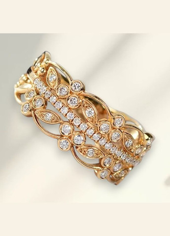 Описание: Женское обручальное кольцо золотистого цвета с изящным дизайном вырезанных цветов и белыми кристаллами. Украшение сочетает романтичный стиль и современную элегантность, подходит для повседневного ношения, свадьбы или помолвки. Размер 18 обеспечивает удобство и надежность, делая кольцо удачным выбором для разных случаев. Характеристики: Тип: обручальное кольцо Дизайн: вырезанные цветы с кристаллами Материал: ювелирный сплав Цвет: золотистый Размер: 18 Стиль: романтичный, классический Особенности: декоративные вырезы, белые кристаллы Преимущества: утончённый дизайн с цветочным орнаментом сочетание блеска кристаллов и золотистого оттенка подходит для свадьбы, помолвки или подарка Состояние: 100% новое Качество: высокое качество, гарантия качества, фирменные изделия