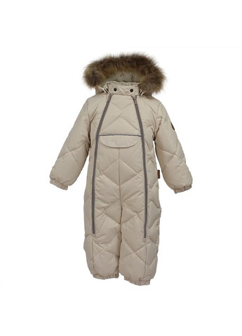 комбинезон на молнии, имеет внутреннюю планку вдоль молнии с мембранной ткани и внешнюю, внешняя планка вдоль всей молнии закрывается на кнопки и липучки, есть дополнительная защита подбородка от молнии, два боковых кармана на молнии, внешние нагрудные накладные карманы со скошенным краем на молнии, внутренний нагрудный вертикальный карман на молнии, капюшон съемный (на кнопках). Регулятор глубины капюшона на липучке. Капюшон с искусственным мехом. Мех на капюшоне снимается на молнии