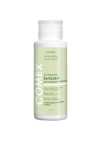 Бальзам из индийских трав Comex (Комекс) предназначен для укрепления и восстановления волос по всей длине. Основные преимущества: разработан по древним аюрведическим рецептам насыщает кожу головы и локоны комплексом витаминов и микроэлементов. нормализует работу сальных желез активизирует процессы регенерации и микроциркуляции крови укрепляет волосяные луковицы, препятствует их выпадению оказывает бактерицидное и антиоксидантное действие устраняет перхоть и нейтрализует свободные радикалы способствует сохранению яркости цвета и препятствует появлению преждевременной седины. Характеристики Производитель: Comex, Украина.