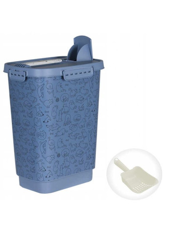 В комплекте к контейнерам 25 и 50 л прилагается ложка. Крышка контейнера со всех сторон надёжно закрывается на 4 защёлки, предусмотрено отверстие с выдвижной крышкой для удобного насыпания корма. Крышка отверстия может быть зафиксирована в нужном вам положении. Для дополнительного удобства на крышке есть ручка. Это позволяет удобно держать контейнер, даже когда он полный и достаточно тяжёлый. Корм в контейнере сберегает свой привлекательный вкус и запах благодаря плотно закрывающейся крышке. Качественный пластик позволит вам пользоваться ёмкостью длительное время, избегая неудобств и неконтролируемого высыпания корма. Преимущества и особенности: 25 и 50 л контейнеры укомплектованы ложкой; на крышке предусмотрен клапан-дозатор; на крышке есть ручка для дополнительного удобства; при изготовлении использован пищевой пластик; изысканный дизайн изделия делает его использование ещё более приятным. Характеристики: Вместимость: 10 л, 25 л, 50 л 10 л – вмещает 3,7-5 кг корма 25 л – вмещает 9,2-12,5 кг корма 50 л – вмещает 18,5 – 25 кг корма Емкость контейнера зависит от размера и формы крокетов сухого корма. Цвет: голубой, капучино, чёрный (изделия с принтом) Фасовка: 1 шт. Внимание! Контейнер 25 л имеет принт собаки или кота, уточняйте рисунок у менеджера во время заказа!