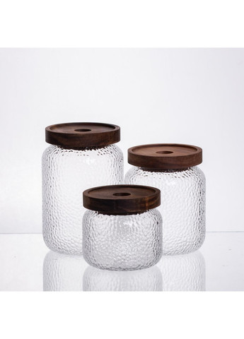 Набор банок для хранения с бамбуковыми крышками — это идеальное решение для организации вашего кухонного пространства. В комплект входят три стеклянные банки объемом 400 мл, 600 мл и 800 мл, которые помогут вам удобно хранить сыпучие продукты, такие как крупы, приправы, чай и кофе. Прозрачная рельефная поверхность позволяет легко контролировать содержимое, а стильные бамбуковые крышки не только эстетически привлекательны, но и обеспечивают надежное герметичное закрытие, сохраняя свежесть продуктов на долгое время. Каждая банка имеет стандартный диаметр 9 см и различную высоту (8 см, 11,5 см, 14 см), что позволяет удобно размещать их на полках или в выдвижных ящиках. Эргономичная форма и одинаковый диаметр обеспечивают комфортное использование и экономию пространства на вашей кухне. Общая масса набора составляет всего 800 г, что делает его легким и удобным для транспортировки. Преимущества набора банок: Экологичные материалы: банки изготовлены из прозрачного стекла, а крышки — из бамбука, что делает их безопасными для здоровья. Удобство использования: три различных объема позволяют классифицировать продукты по видам и количеству. Эстетика: рельефная поверхность и натуральные крышки придают набору стильный и современный вид, который впишется в любой интерьер. Герметичность: бамбуковые крышки надежно закрывают банки, предотвращая попадание влаги и воздуха, что способствует длительному хранению продуктов. Легкость в уходе: стеклянные банки легко мыть и не впитывают запахи, что делает их идеальными для хранения различных сыпучих продуктов. Этот набор банок предназначен для домохозяек, кулинаров и всех, кто ценит порядок на кухне. Он также будет отличным подарком для любителей кулинарии и тех, кто хочет внести элементы стиля в свое кухонное пространство. Используйте набор для хранения продуктов в домашних условиях, офисах или загородных домах — он станет незаменимым помощником в организации вашего пространства.
