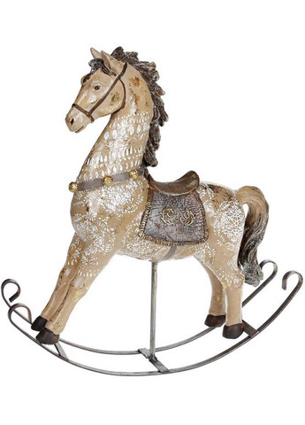 Статуэтка декоративная "Лошадка-качалка". Комбинированные материалы: полистоун (искусственный камень) и металл. Размер: 21х5.5х18см. Рождественское украшение.