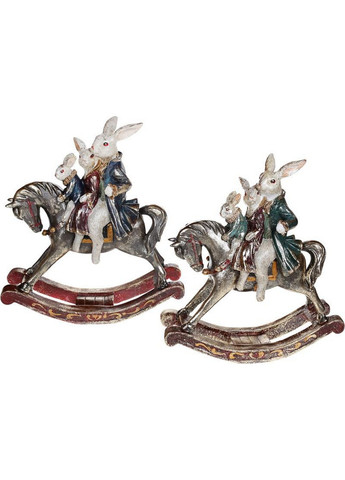 Отправка в течение 2-3 рабочих дней. Статуэтка-качалка "Семья кроликов на лошадке". Материал – полистоун (искусственный камень) с цветной эмалью. Размер: 28х11х30см. Серия: Старый замок; Материал: Полистоун (искусственный камень); Размер: 28 х 11 х 30 см; Комплектация: 1 статуэтка;