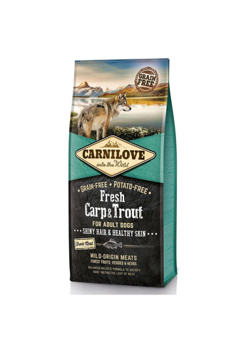Корм Carnilove Fresh Carp & Trout был разработан с учетом природных склонностей и потребностей вашего четвероногого питомца. Это сбалансированный рацион с богатым содержанием свежей рыбы и морепродуктов в сочетании с разнообразными овощами, ягодами и травами. Возвращение к естественному рациону помогает поддержать оптимальное физическое состояние, защищает сердечно-сосудистую систему, питает сухую кожу и придает шерсти здоровый вид и блеск. Карп имеет уникальное сочетание белков, которые легко усваиваются благодаря более коротким мышечным волокнам. Сочетание карпа и форели природный источник незаменимых жирных кислот омега-3, которые оказывают благоприятное действие на качество кожи и шерсти. Докозагексаеновая и эйкозапентаеновая кислоты увеличивают положительный эффект, оказываемый этой комбинацией полезных белков. Состав: свежий карп (26%), сушеная форель (18%), гидролизированный лосось (14%), сушеный лосось (12%), тыква, нут, горох, куриный жир (консервирован токоферолами, 5%), куриная печень (3%), рыбий жир из лосося (2%), яблоки, морковь, льняное семя, гидролизованные панцири ракообразных (источник глюкозамина, 0,026%), хрящевой экстракт (источник хондроитина, 0,016%), пивные дрожжи (источник маннан-олигосахаридов, 0,015%), корень цикория (источник фрукто-олигосахаридов, 0,01%), юкка Шидигера (0,01%), водоросли (0,01%), псиллиум (0,01%), тимьян (0,01%), розмарин (0,01%), орегано (0,01%), клюква (0,0008%), голубика (0,0008%), облепиха крушинная (0,0008%), корень имбиря (0,0008%), шалфей (0,0008%). Пищевые добавки на 1 кг: витамин А (3a672a) 20 000 ME, витамин D3 (3a671) 1 500 ME, витамин E (3a700) 400 мг, xелат цинка и аминокислот n-гидрат (3b606) 85 мг, xелат железа и аминокислот n-гидрат (3b106) 70 мг, xелат марганца и аминокислот n-гидрат (3b504) 35 мг, йодид калия (3b201) 0,65 мг, хелат меди и аминокислот n-гидрат (3b406) 15 мг, oрганическая форма селена, производное от жизнедеятельности дрожжей Saccharomyces cerevisiae CNCM I-3060 (3b810) 0,2 мг. Содержит исключительно натуральные антиоксиданты. Аналитический состав на 1 кг: сырой белок 34,0%, содержание жира 15,0%, влага 10,0%, сырая зола 7,2%, сырая клетчатка 3,5%, кальций 1,0%, фосфор 0,8%, натрий 0,5 %, жирные кислоты омега-3 0,8%, жирные кислоты омега-6 1,8%, эйкозапентаеновая кислота (20:5 n-3) 0,1%, докозагексаеновая кислота (22:6 n-3) 0,2%. Калорийность: 3 730 ккал/кг Рекомендации по дозированию указанные на упаковке, обязательно обеспечьте питомца порцией питьевой воды. Вес собаки (кг) 5 10 15 20 25 30 40 50 60 70 80 90 Суточная норма (г/день) 75 130 170 220 250 280 350 420 470 530 580 640