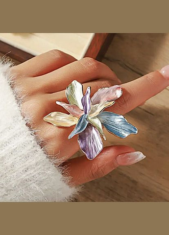 Женское кольцо Широкое, стильное акцентное кольцо Форма большого цветка разноцветные лепестки Эффектное акцентное и женственное украшение размер регулируется 18-20 размер фасада 6х5.5см Продается без подарочной коробки.